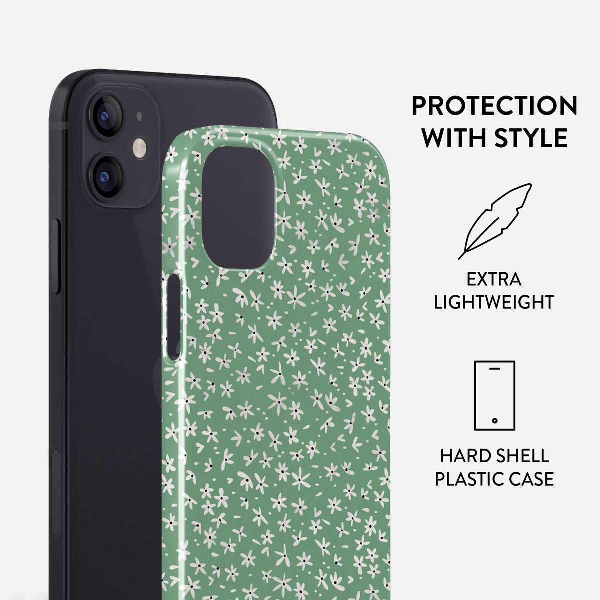 Our minimalistic floral Lush Meadows iPhone 12 Mini phone case is inspired by the green fields covered in petite and dainty flowers. The soft green phone case with a delicate floral pattern creates a perfect feminine design that will fit every occasion.