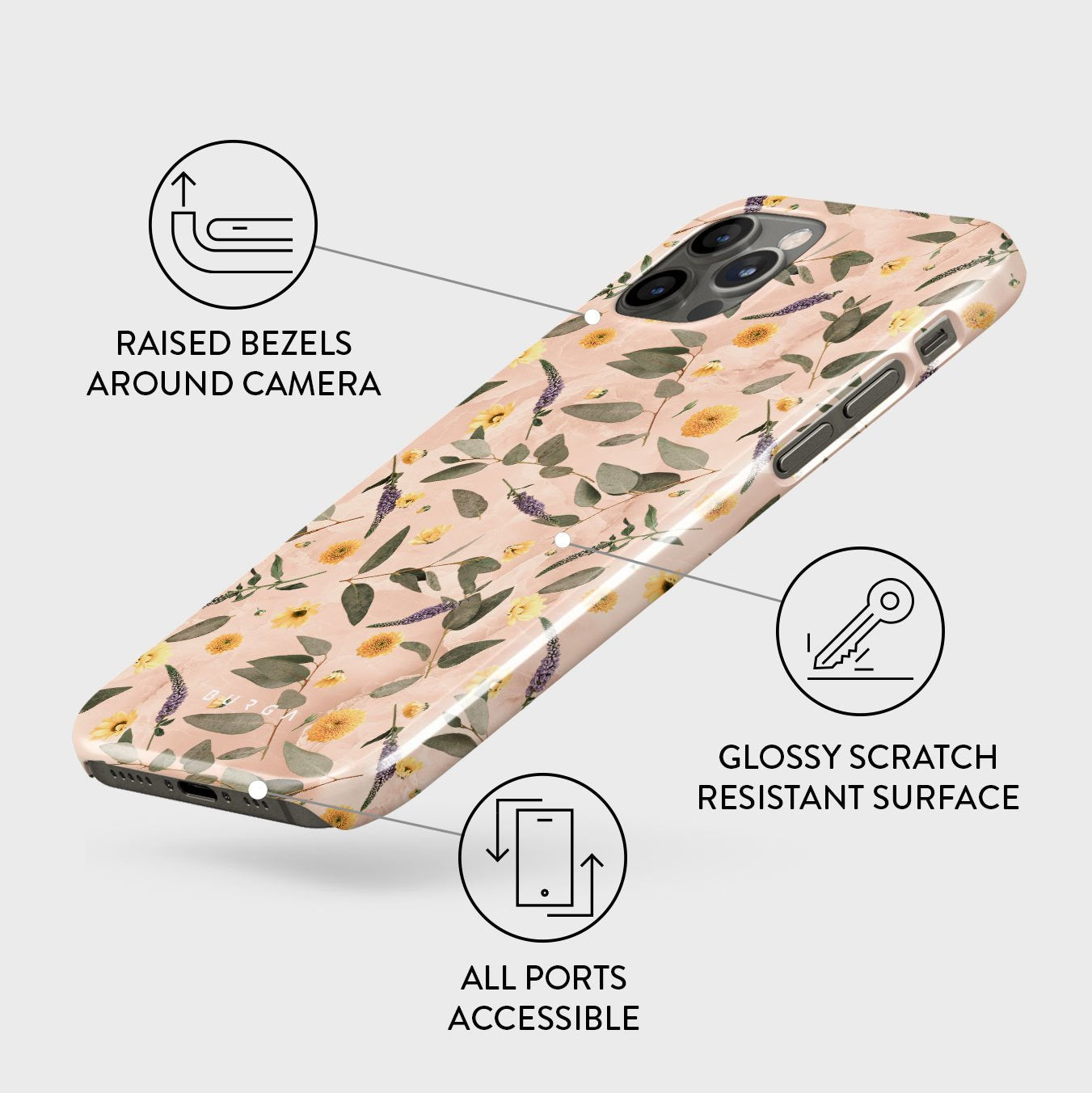 Sunday Brunch iPhone 12 Pro phone case features a timeless flower pattern. The soft-toned case with a pop of lavender and yellow colors will add a splash of energy to your style while protecting your phone from dangerous falls.