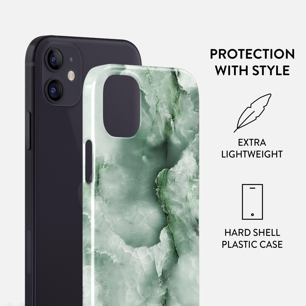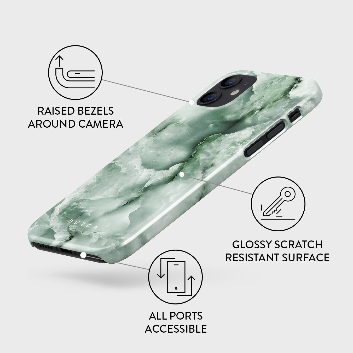 Our Pistachio Cheesecake iPhone 12 Mini phone case is inspired by the soft green color of pistachios. The marble pattern never goes out of style, and reimagined design with pastel green and white swirls offers a designer feel. Such a hard-shell case will provide heavy-duty protection while adding a touch of pastel to your collection.