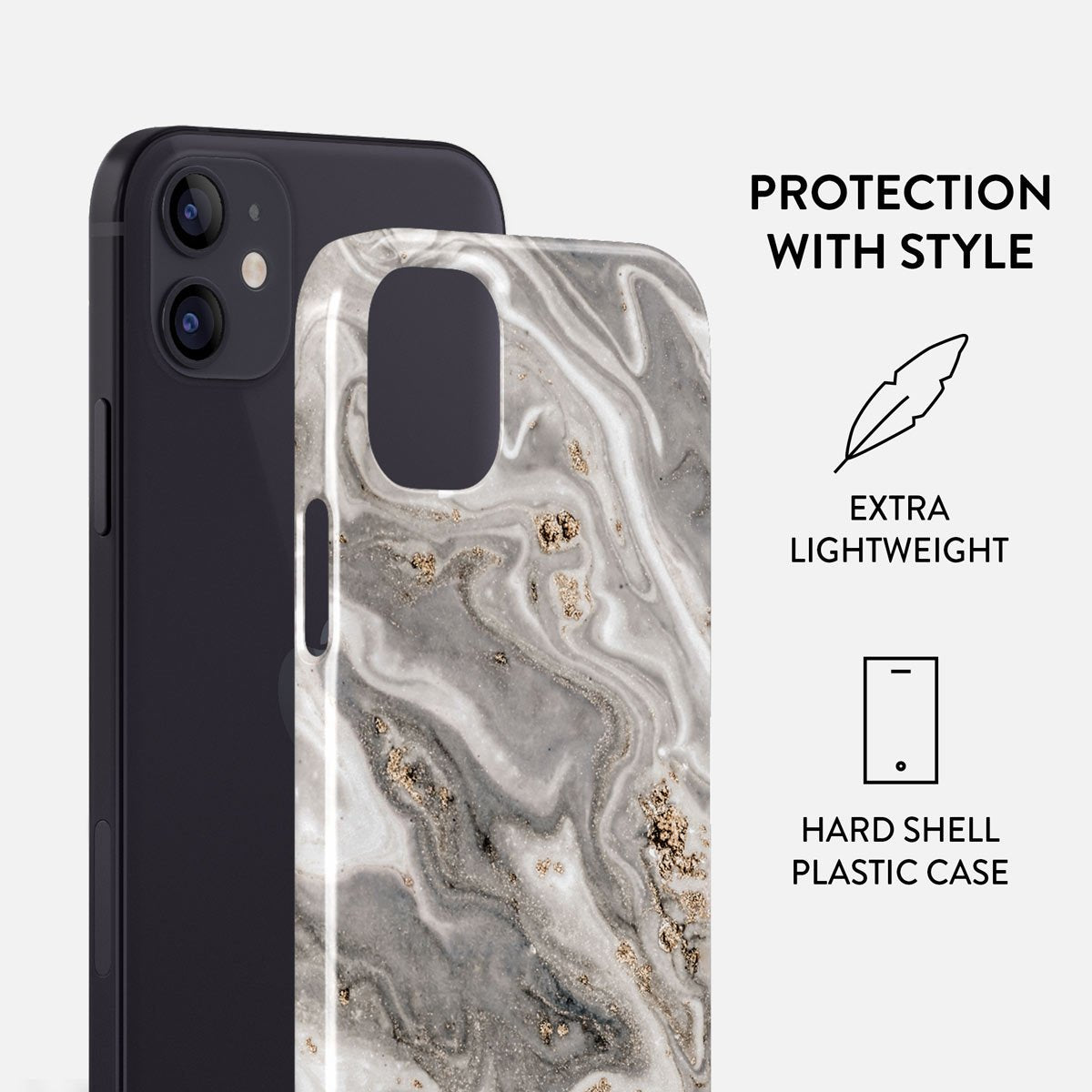 The wind outside is playing his songs. Some fear, some love, and some simply enjoy. But do not be afraid, with our grey marble iPhone 12 Mini phone case inspired by a beautiful snowstorm, you can have the pretty part of it without any coldness. And as the case offers heavy-duty protection, your phone will also be safe and sound!